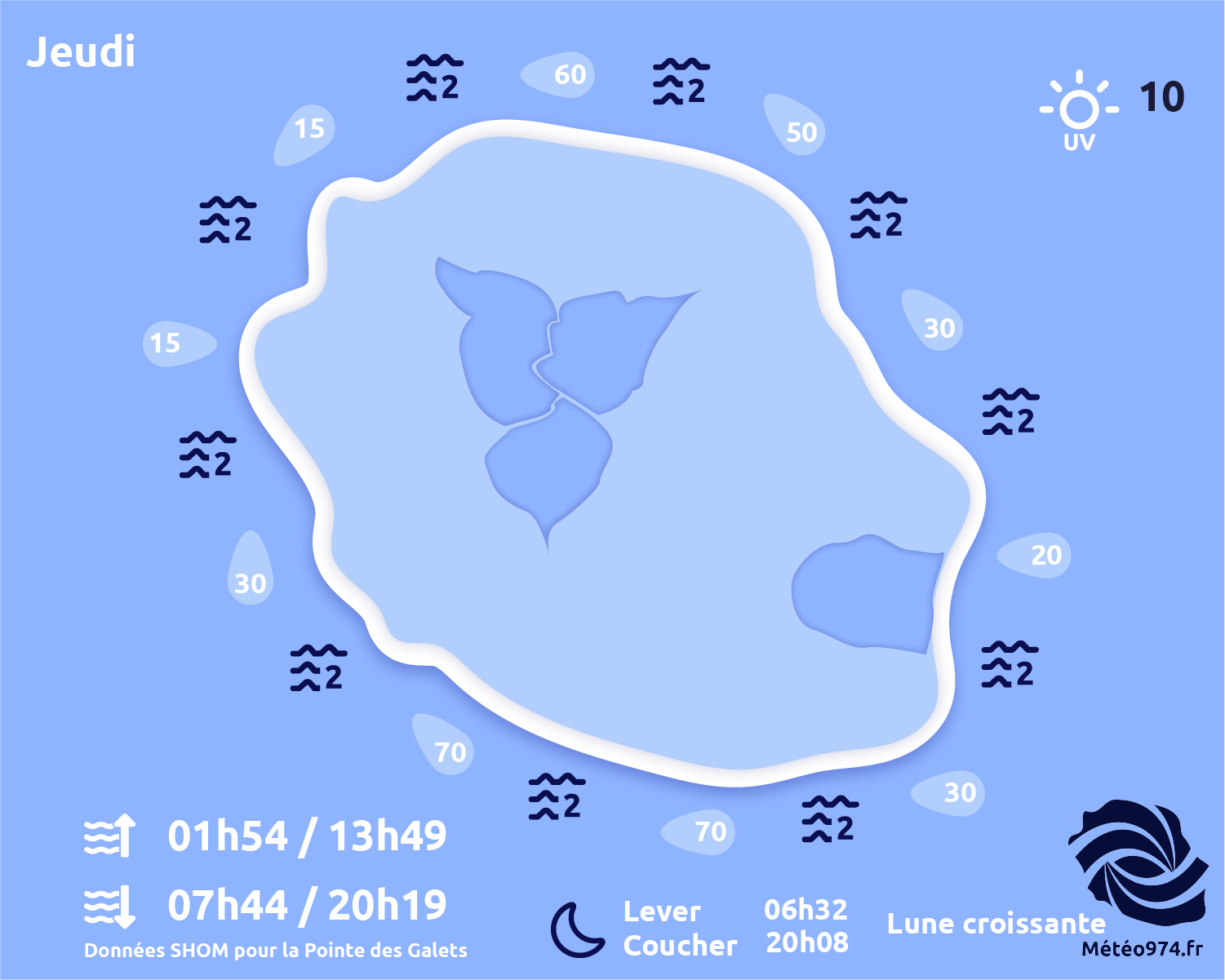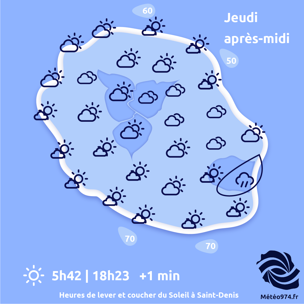 JEUDI 23 OCTOBRE : C'est une belle matinée ensoleillée qui s'annonce sur quasiment toute l'île. On notera tout de même quelques...