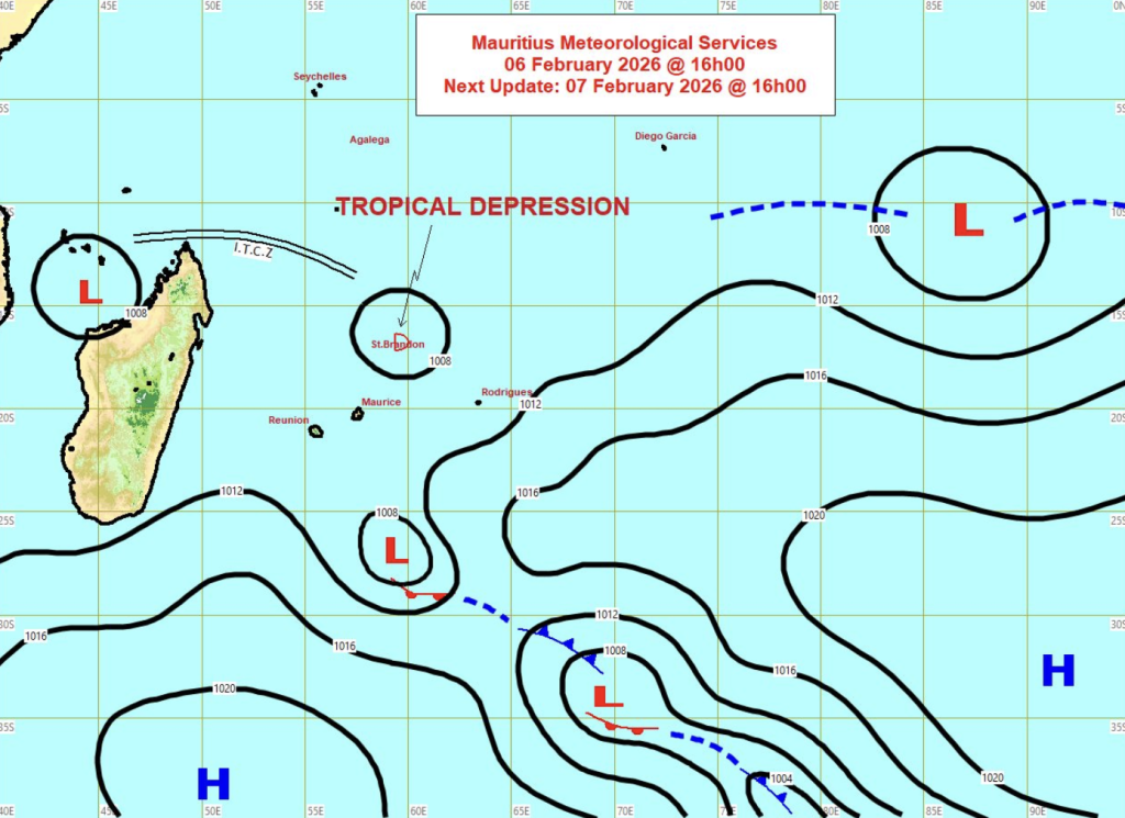 Dépression tropicale GEZANI transitant au nord de Maurice et au nord-est de la Réunion, à bonne distance. Conditions sèches ce samedi.